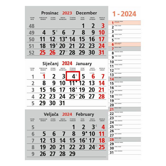 KALENDAR ZIDNI TRODIJELNI - MEMO