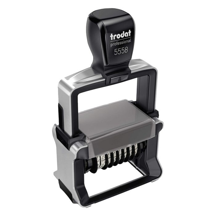 metalna konstrukcija presvučena kvalitetnom plastičnom legurom što omogućuje duži vijek, stabilan i tih, sa indeksnim prozorčićem za jednostavniju identifikaciju, sa obostranom kočnicom za jednostavniju izmjenu jastučića, ima pozicionerski prozorčić radi lakšeg pozicioniranja otiska, sa crnim jastučićem, rezervni jastučić dostupan u bojama: crna, crvena, ljubičasta, plava, zelena i bez tinte