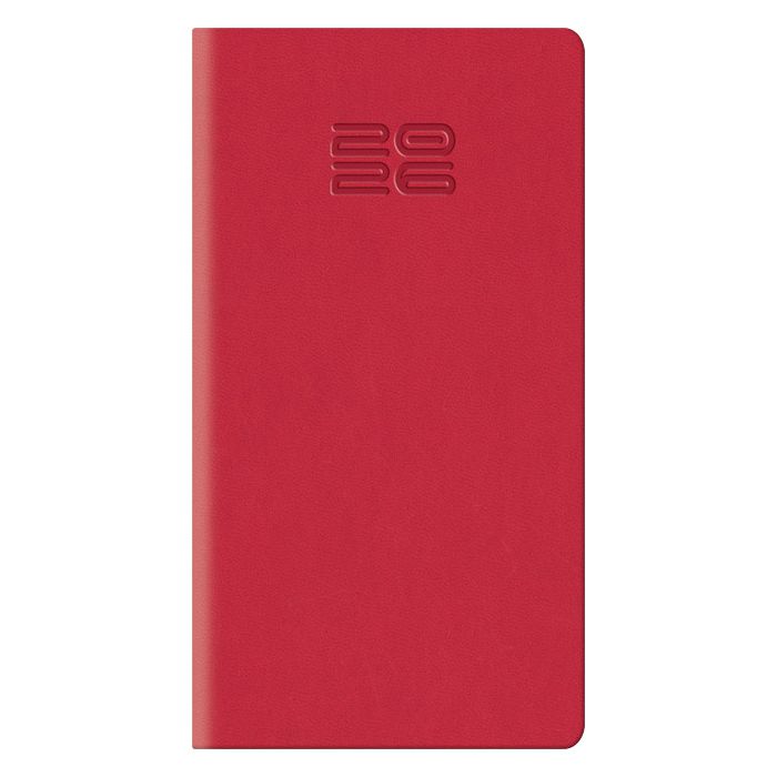 dimenzija: 80x150 mm, jedan tjedan na dvije stranice, sa adresarom, tekst na: engleskom, njemačkom, francuskom i talijanskom, korica je izrađena od koagulatnog materijala koji je pogodan za: sitotisak, suhi žig, foliotisak zlatni/srebrni, foliotisak u boji i digitalni tisak